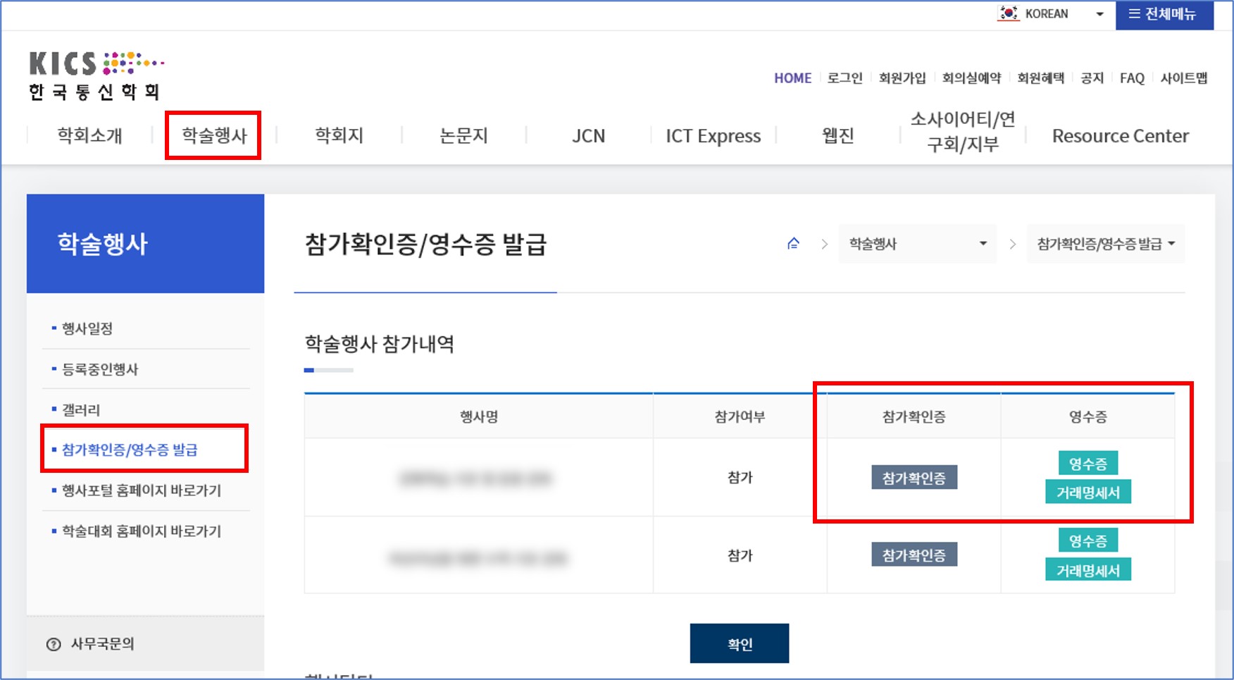 ▣ 참가확인증/영수증/거래명세표 발급(행사 종료 후 발급 가능)