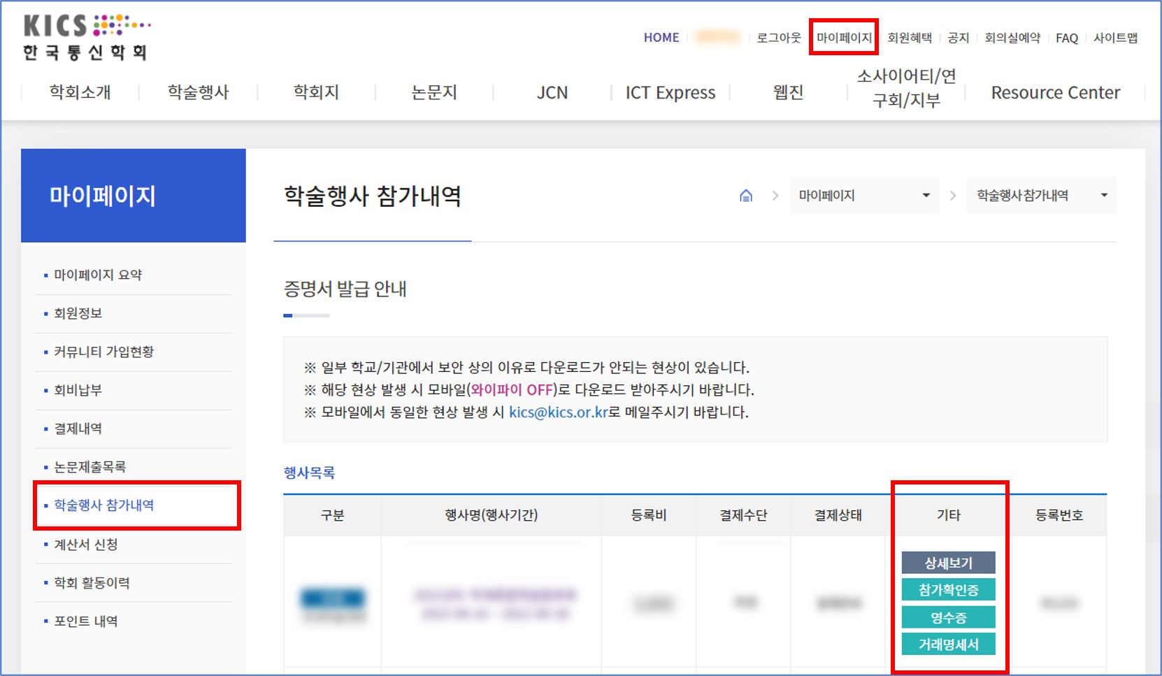 - 비회원 : 한국통신학회 홈페이지 [학술행사]-[참가확인증/영수증 발급]에서 출력