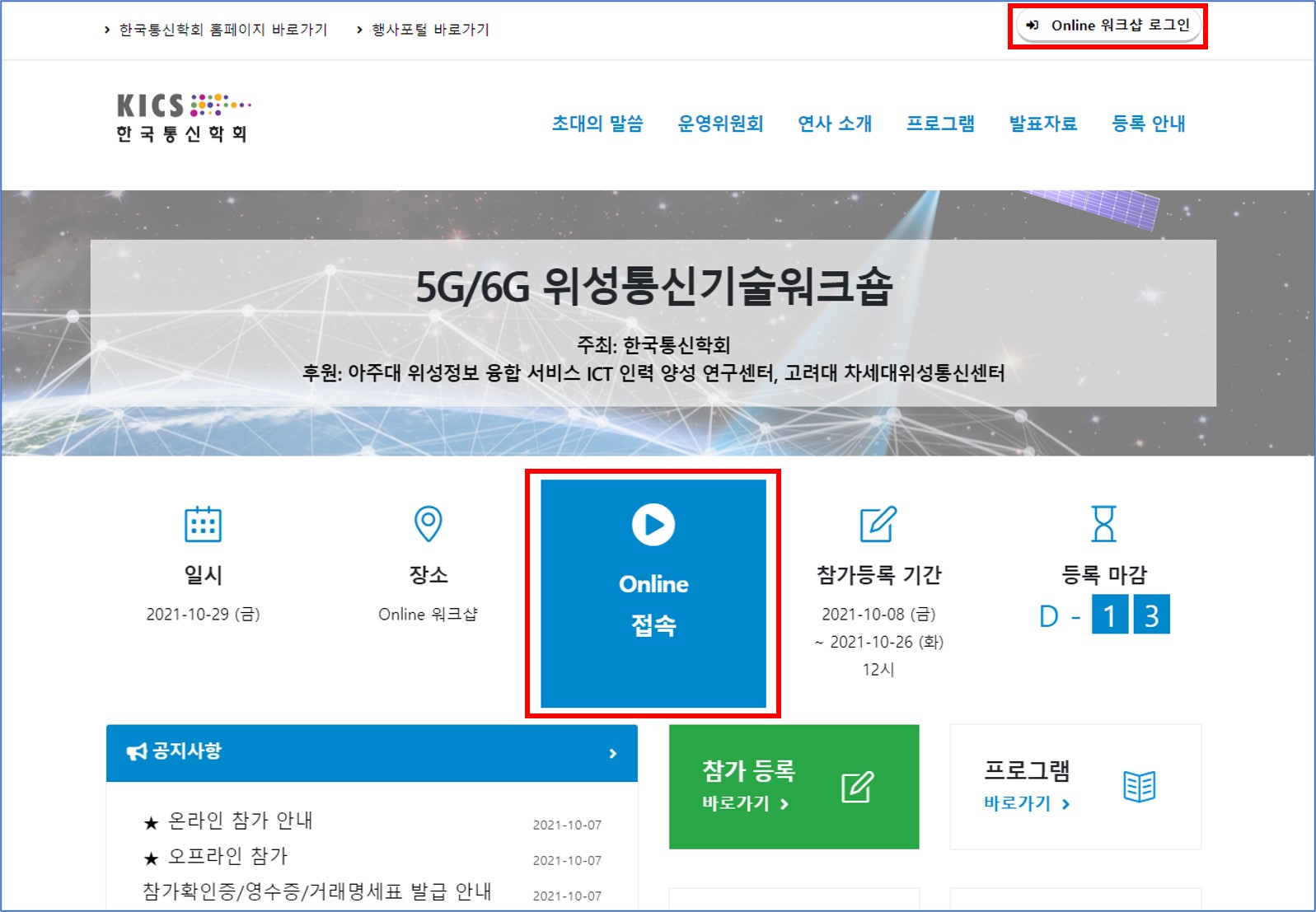 ▣ 행사 홈페이지(https://event.kics.or.kr/613)에서 Online 워크샵 로그인 후 접속 가능