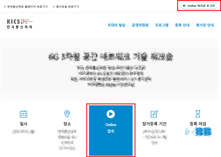 : 온라인 행사 접속 방법과 동일하게 행사홈페이지(https://event.kics.or.kr/819)우측 상단 Online 워크샵 로그인 후, 시청 가능