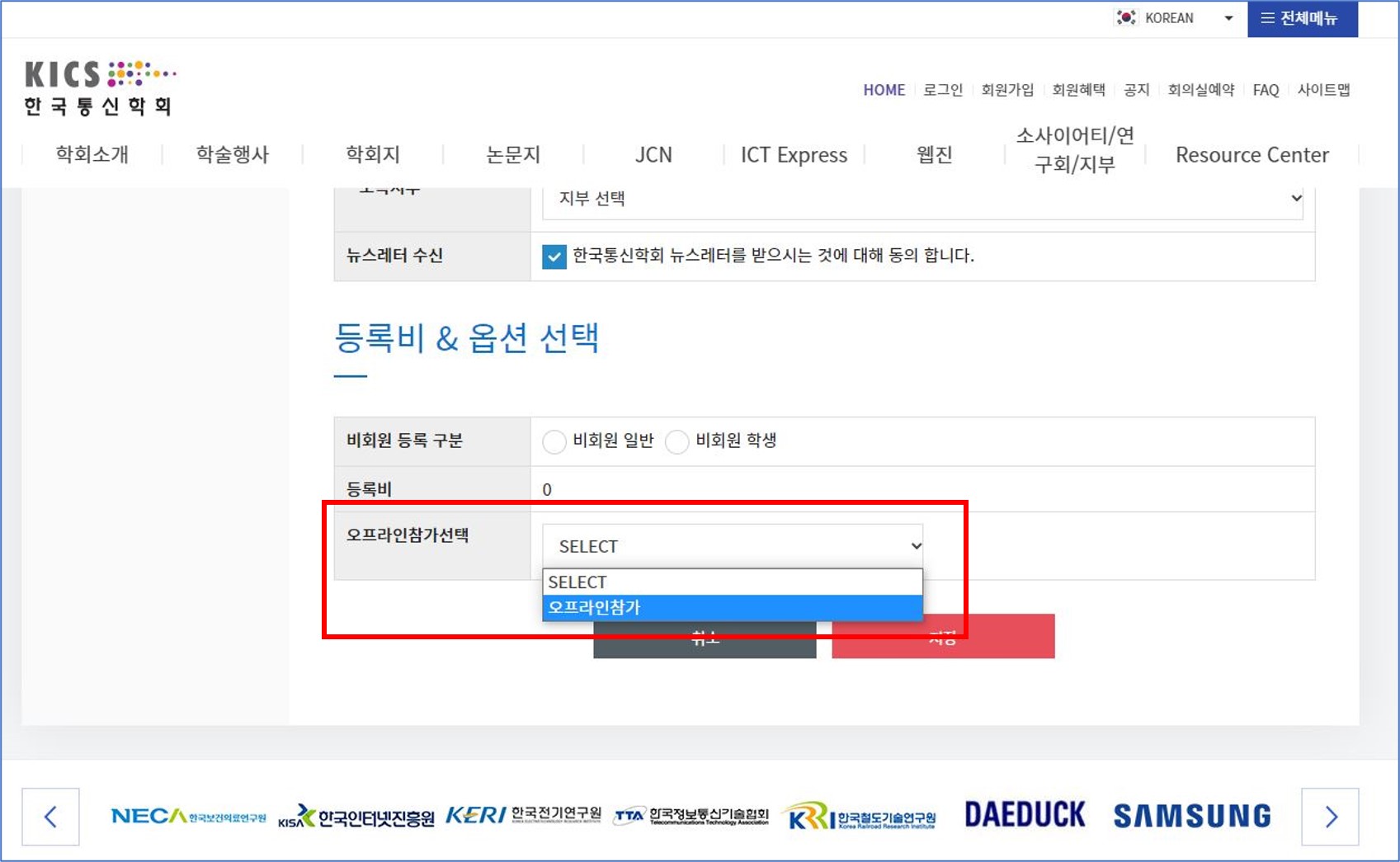 ▣ 참가 등록 시 [오프라인 참가 선택]
